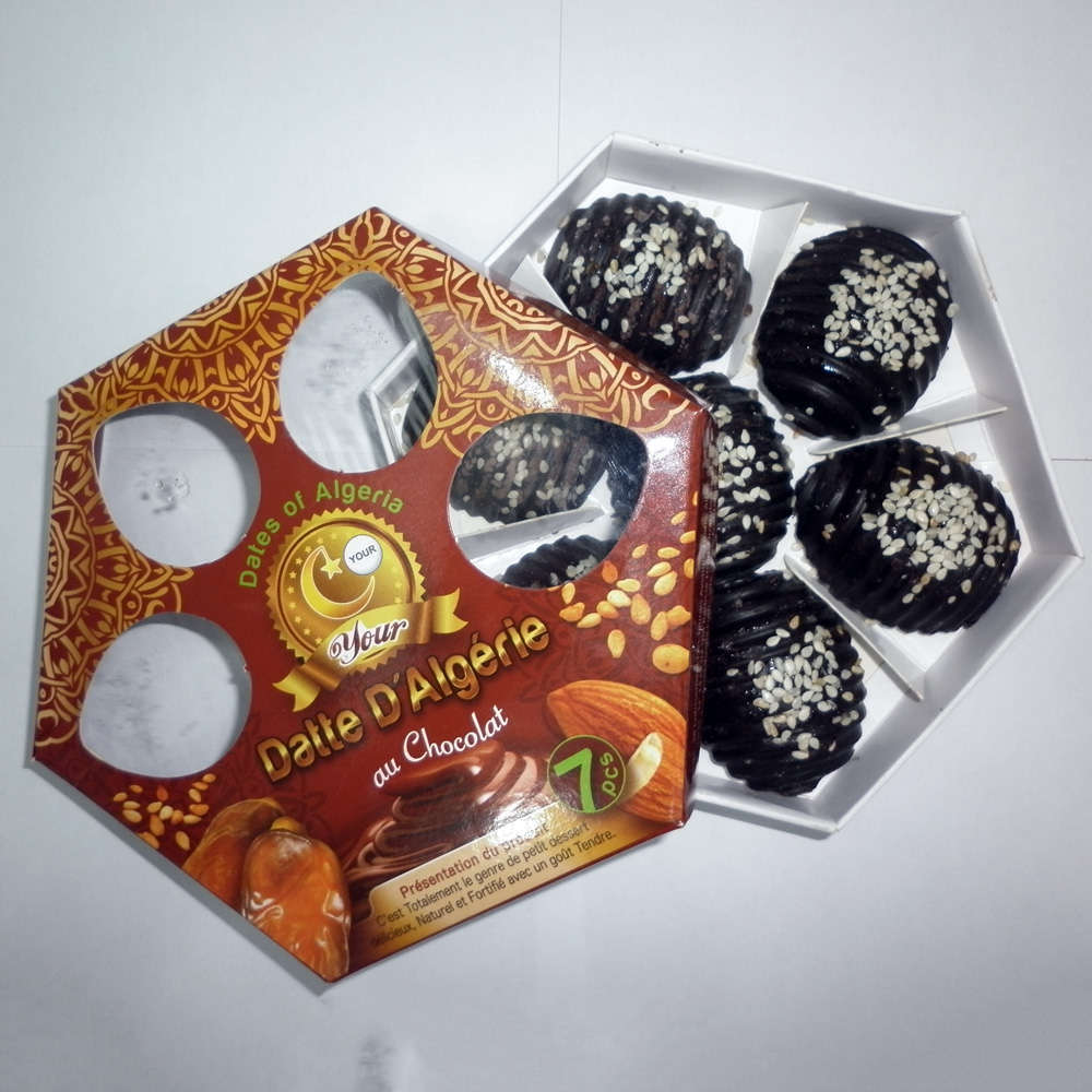 La datte ravier est une datte étuvée, elle provient du sud de l'Algérie, plus précisément des oasis d'El - Oued et de Tougourt. Très riche en antioxydants et en sucre naturel, elle est très appréciée pour son goût et sa légèreté, nous la proposons en cartons de 250 g ou de 500 g.